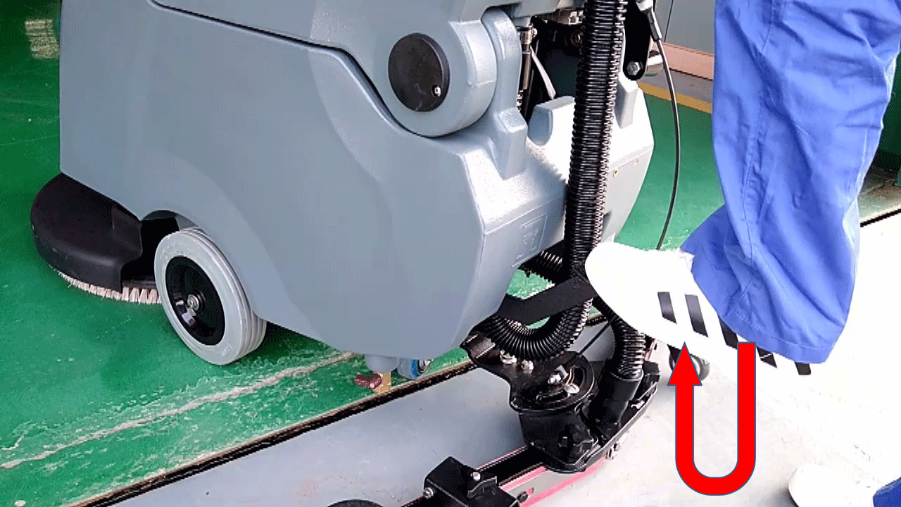 3.踩下刷盤腳踏,往左挪動(dòng)掛好,提升刷盤